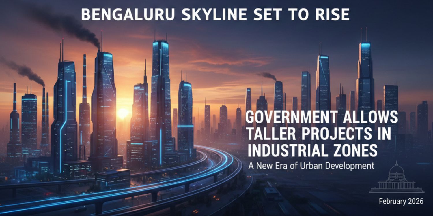The Government of Karnataka has announced a significant shift in urban development policy by permitting taller buildings in designated industrial areas of Bengaluru, a move expected to reshape the city’s skyline and boost its real estate and industrial sectors. Under the revised regulations, developers can construct additional floors beyond previous limits by acquiring extra Floor Area Ratio (FAR) through premiums to authorities.