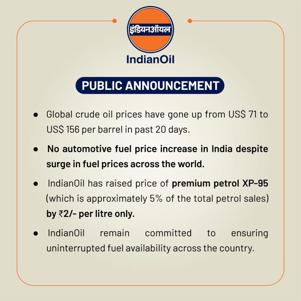 Indian Oil Corporation (IOC), the country’s largest fuel retailer, issued a public statement dismissing rumours of any fuel shortage. The company assured citizens that there is adequate fuel stock available across the country and that supply chains remain fully functional.